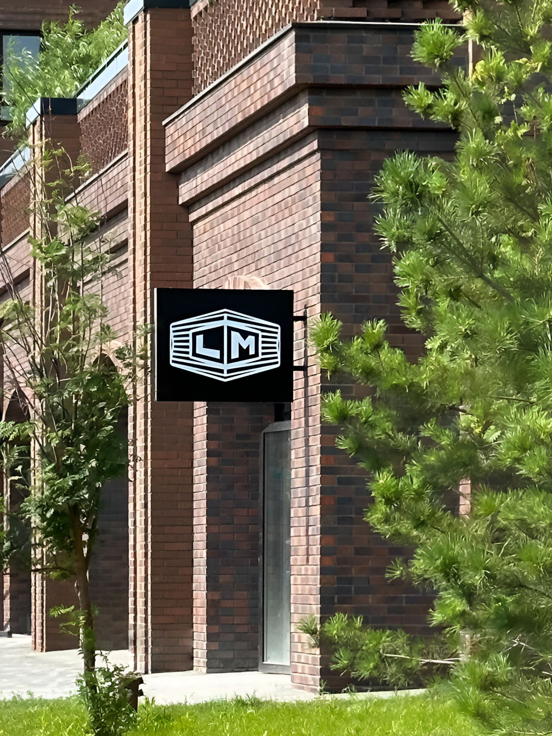 Графический дизайн входной группы. Помимо основной вывески над входом, мы добавили световой куб с логотипом автосалона с торца — это увеличивает заметность бренда и привлекает потенциальных клиентов издалека.
