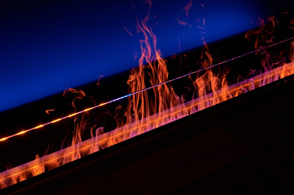 Плотные шторы в шоуруме при необходимости можно закрыть и отсечь дневной свет — паровой камин раскрывается в полумраке, позволяя лучше прочувствовать продукт.