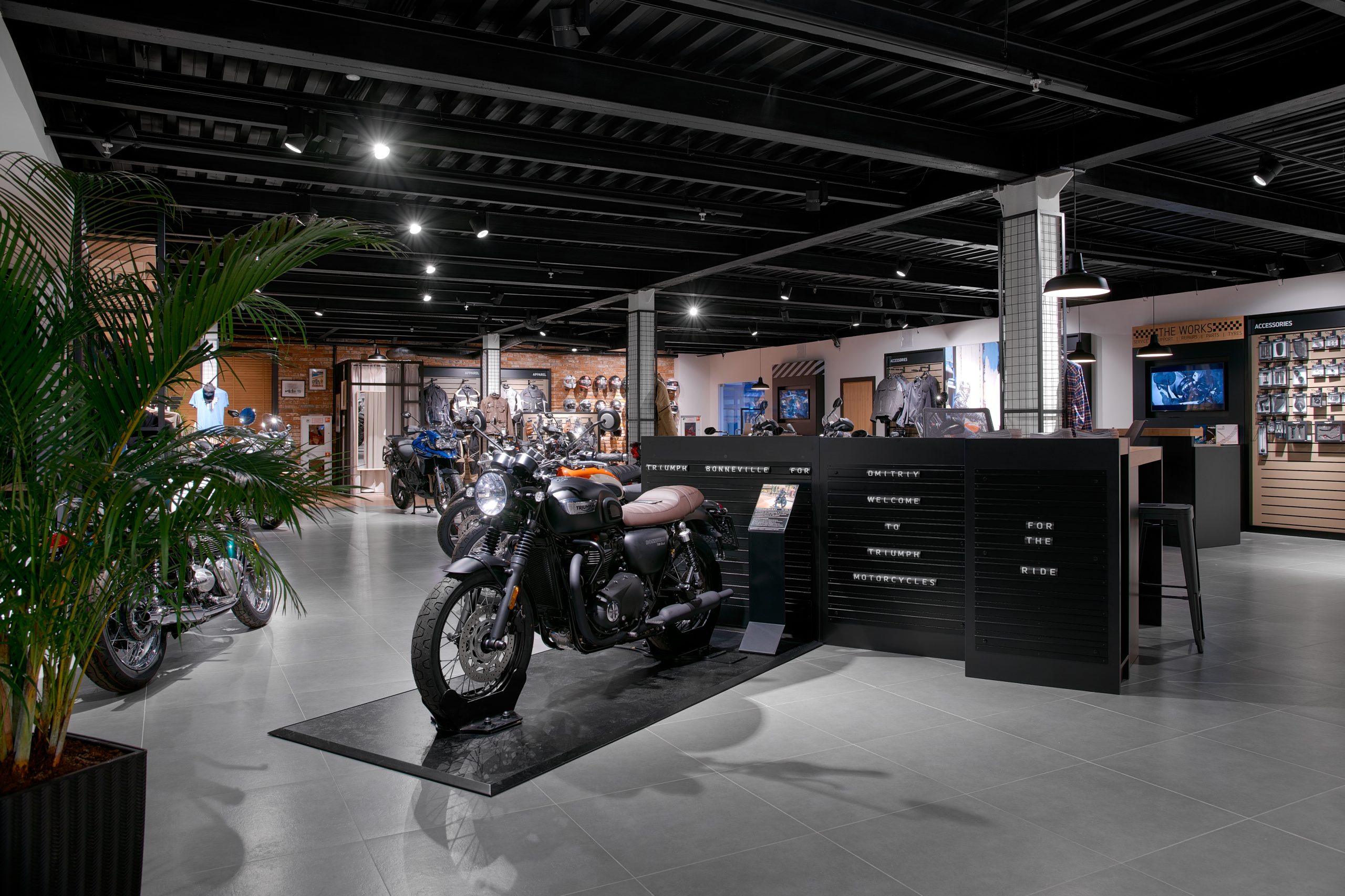 Постоянный клиент обратился к нам для разработки монобрендового мотосалона Triumph — всемирно известного производителя мотоциклов, одежды и аксессуаров.